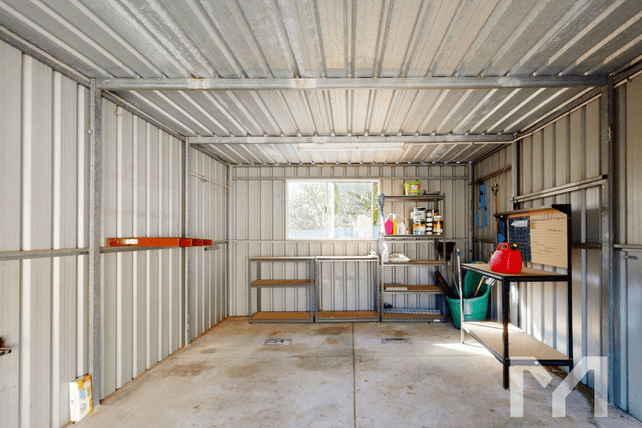 • Large storage shed to keep bikes, tools or hobby gear safely stored