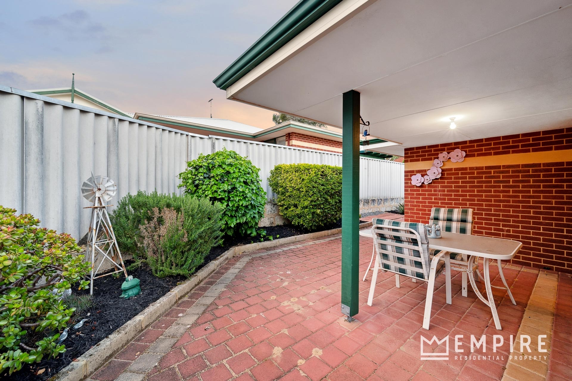 • Undercover alfresco, overlooking easy care rear yard with reticulated garden beds