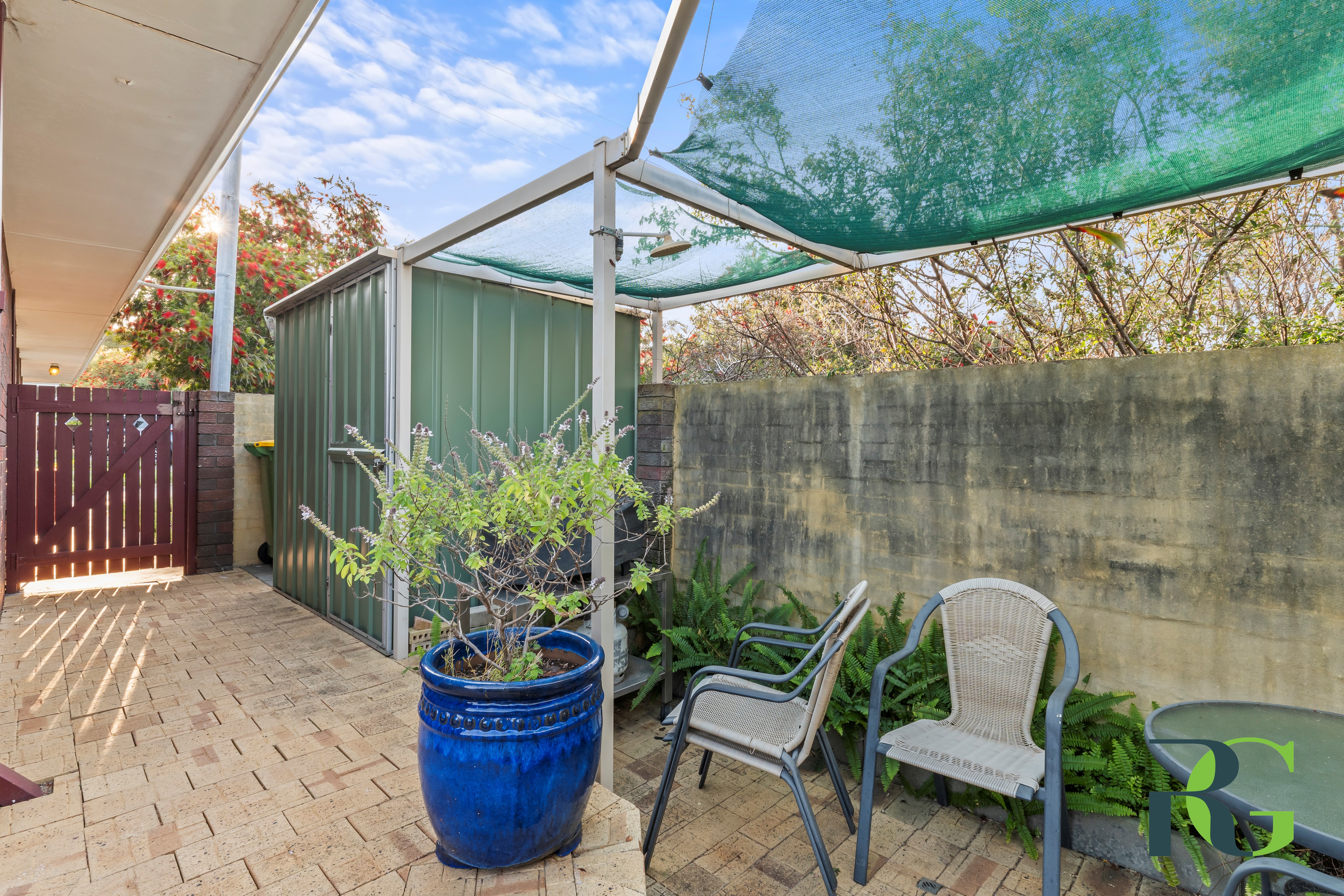 • Wooden Window Frames and Floorboards in living area • Carpeted bedrooms • Easy care outdoor area with storage shed • Prime location