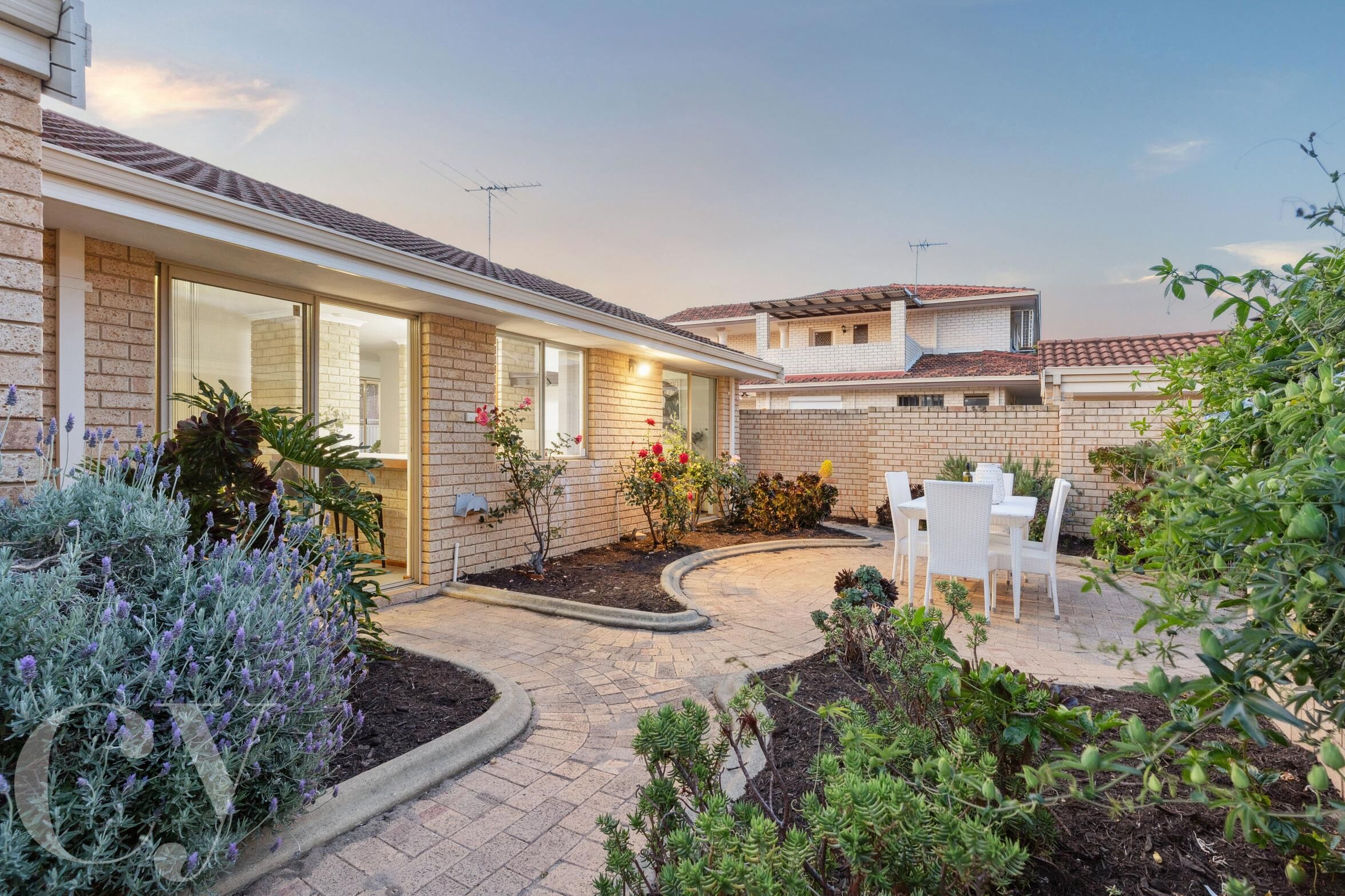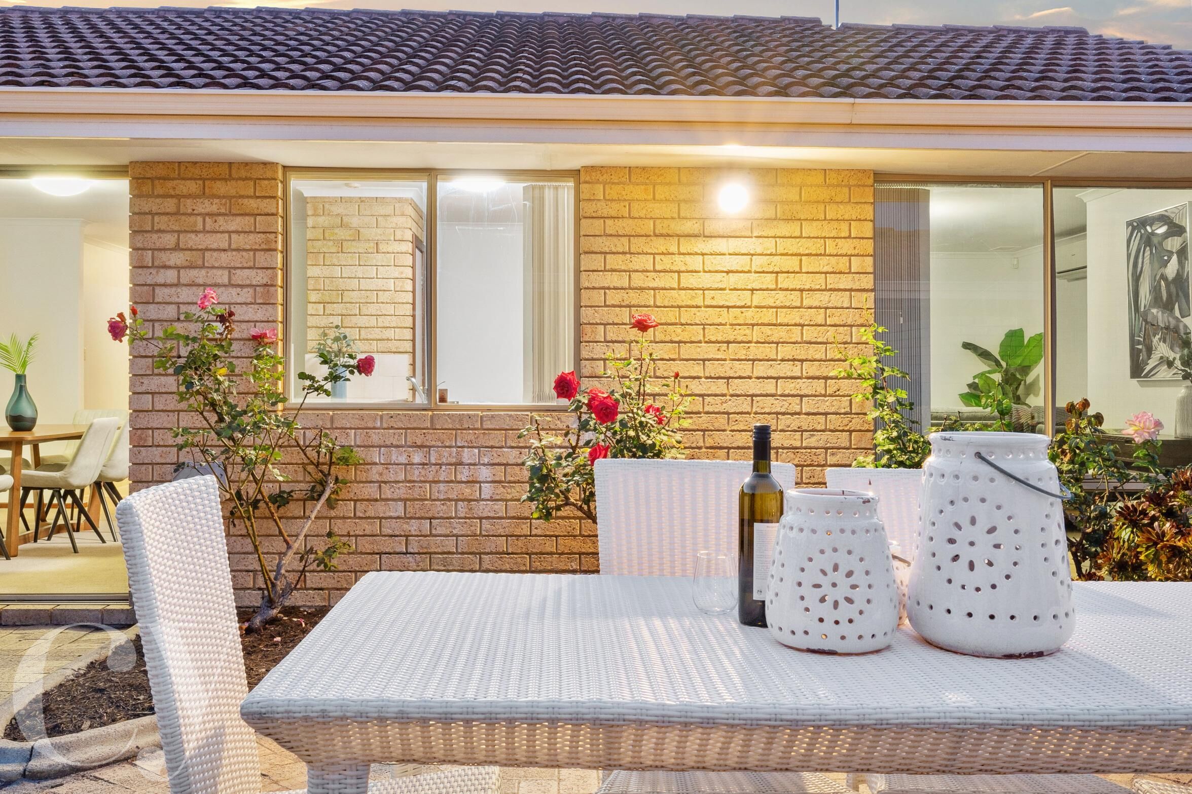 A generous courtyard offers a low-maintenance garden with a lush passionfruit vine and established roses as well as hardy succulents. The area is a spacious blank canvas, should you wish to create an outdoor living space to your taste.